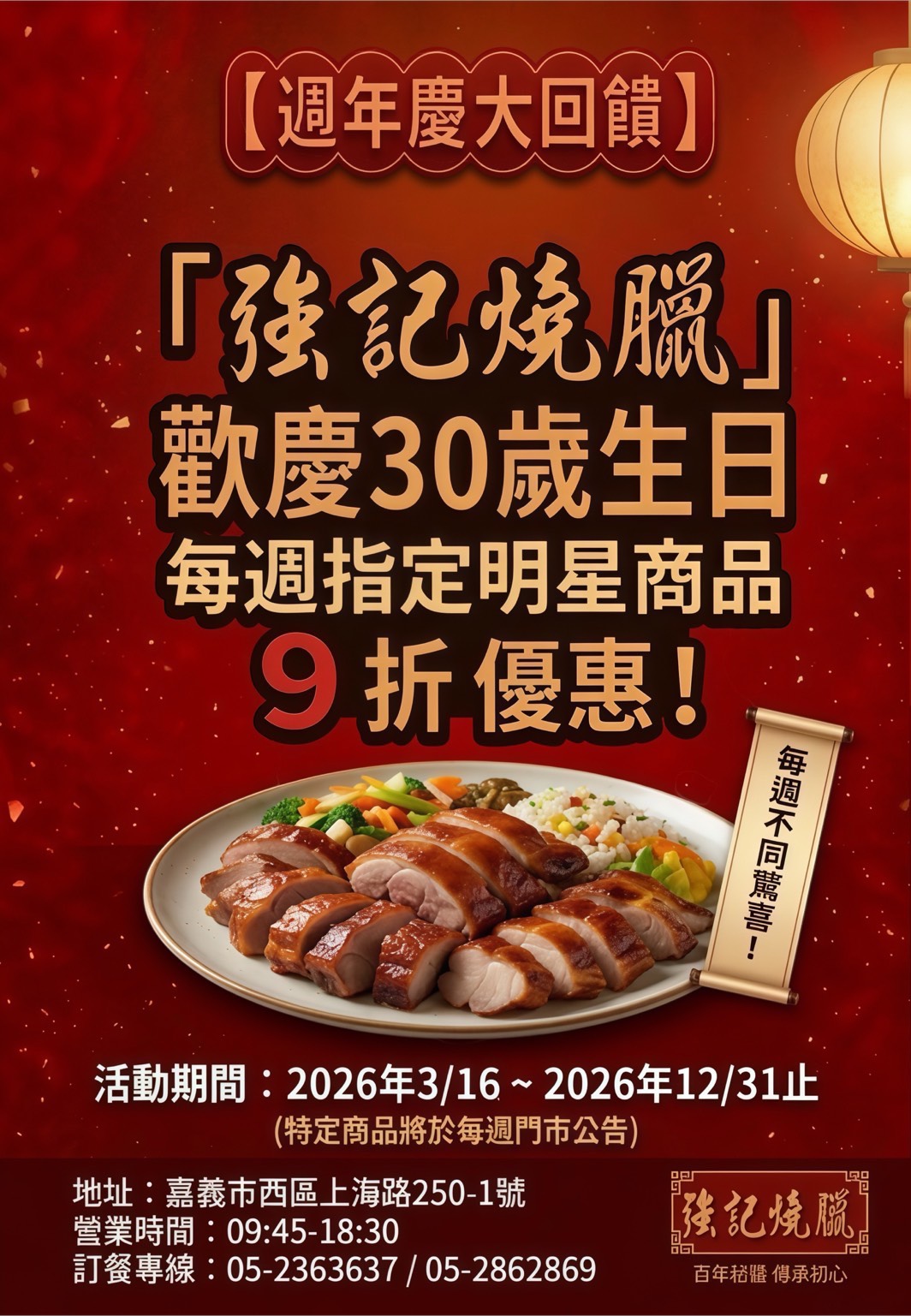 這三萬多個日子裡,爐火從未熄滅。我們從當初的一人小攤,到現在成為許多家庭餐桌上的日常,全憑大家對那一塊金黃脆皮、一口香嫩叉燒的喜愛。為了感謝這份長達三十年的信任,我們決定在 2026 年,開啟一場持續一整年的美味馬拉松!